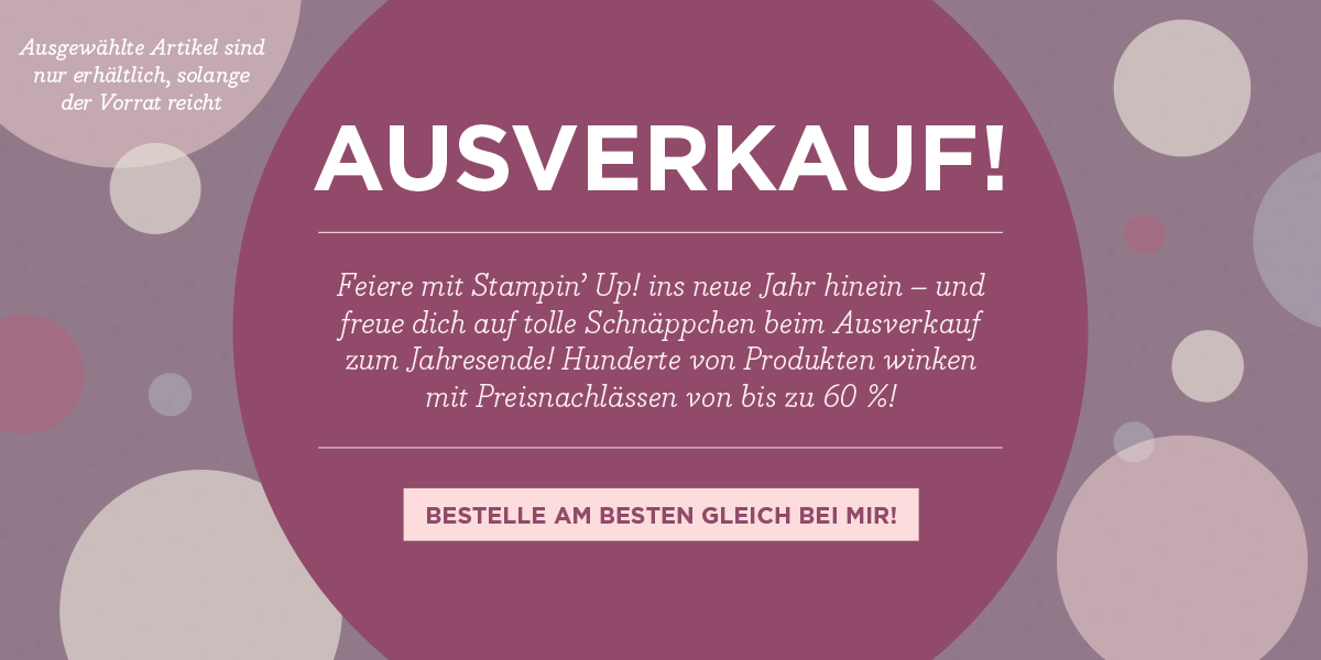 Morgen startet der Ausverkauf zum Jahresende und es werden jede Menge Auslaufartikel aus dem Herbst-/Winterkatalog reduziert sein. Ihr findet alle Artikel, die reduziert sind im Online-Shop unter „Year-End Closeouts". Den Linke füge ich morgen ein, so dass Ihr wieder nur aufs Bild klicken müsst :-) ... oder hier ... Die Aktion läuft ab morgen (bzw. heute Nacht) bis zum 03. Januar 2016. Wenn Ihr es eilig habt ... Read the post