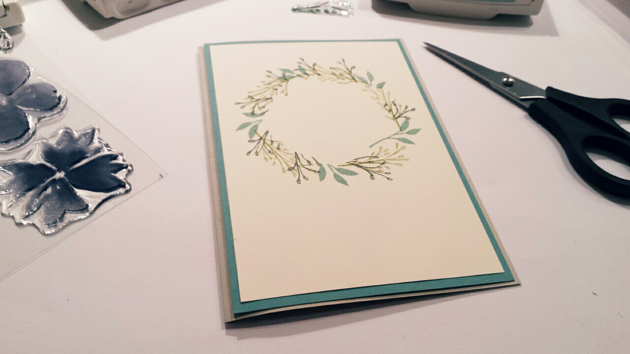 ... heißt das neue Stempelset aus dem aktuellen Jahreskatalog. Ihr findet es auf Seite 139. Für meine Karte habe ich nur die Zweige und den Gruß verwendet. Die Blüten werde ich aber auf jeden Fall auch noch ausprobieren, sie sind viel zu schön, um sie unbeachtet zu lassen. Ich hatte die Idee, mit den Zweigen einen Kranz zu gestalten. Und so sieht das dann also aus ... Ich habe mir als Orientierung einen 2" ... Read the post